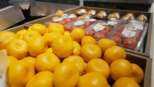 走进霍尔果斯市东方红超市,金黄的橘子堆成小山,鲜红的苹果泛着光泽,蔬菜区里绿意盎然,熟食柜台香气四溢,前来选购的顾客络绎不绝,现场秩序井然。