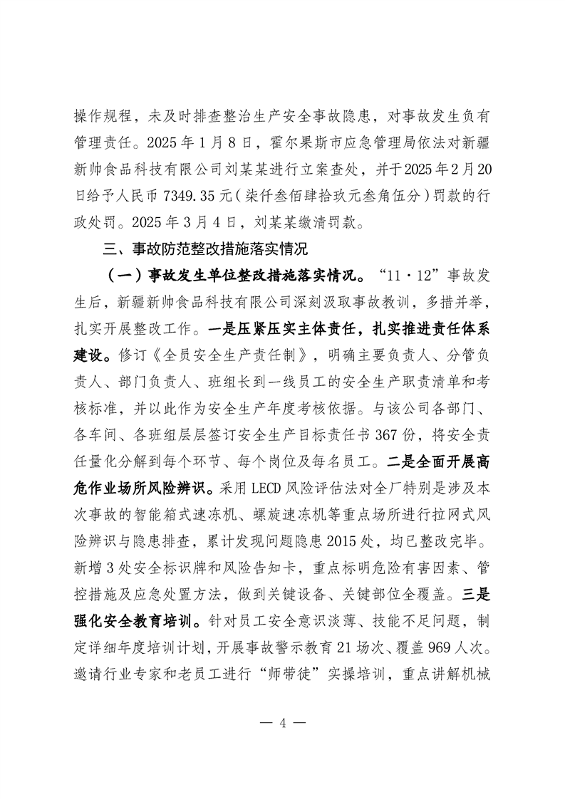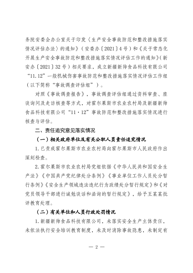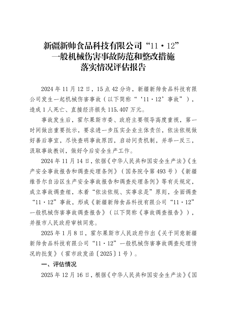 新疆新帅食品科技有限公司“11·12”__一般机械伤害事故防范和整改措施落实情况评估报告