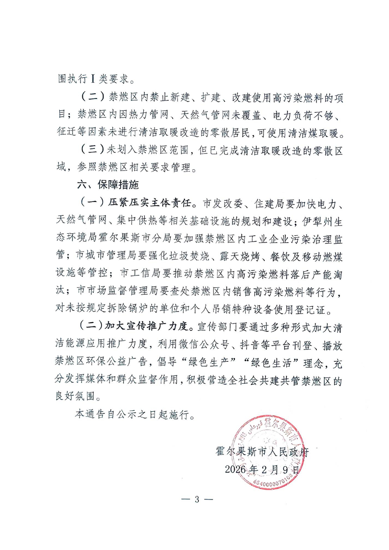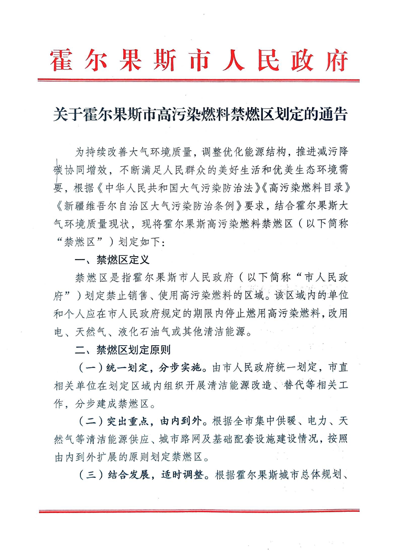 关于霍尔果斯市高污染燃料禁燃区划定的通告