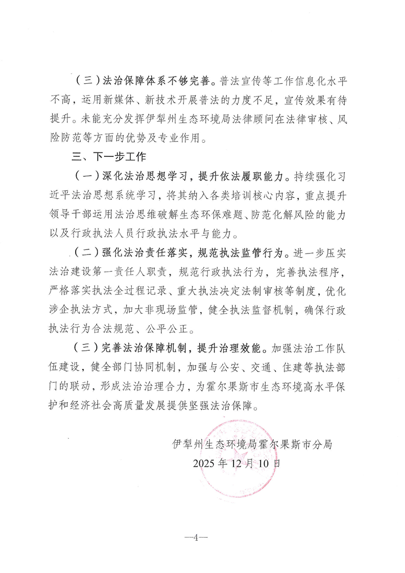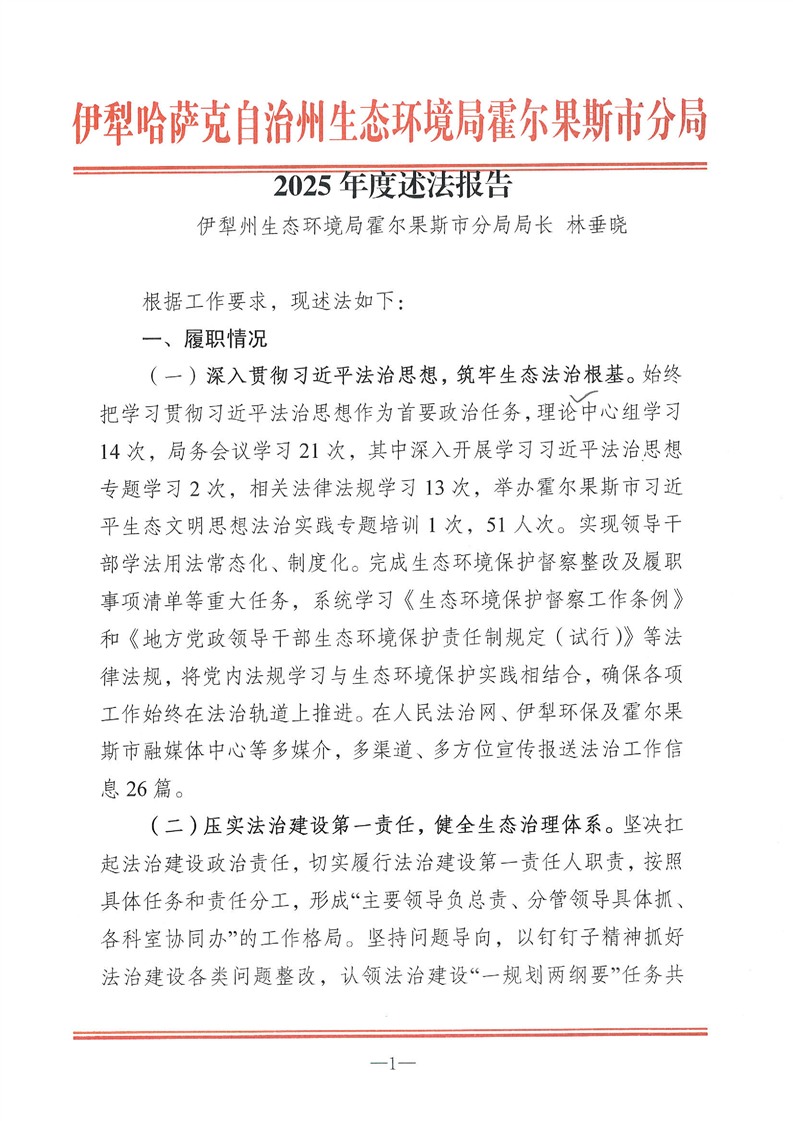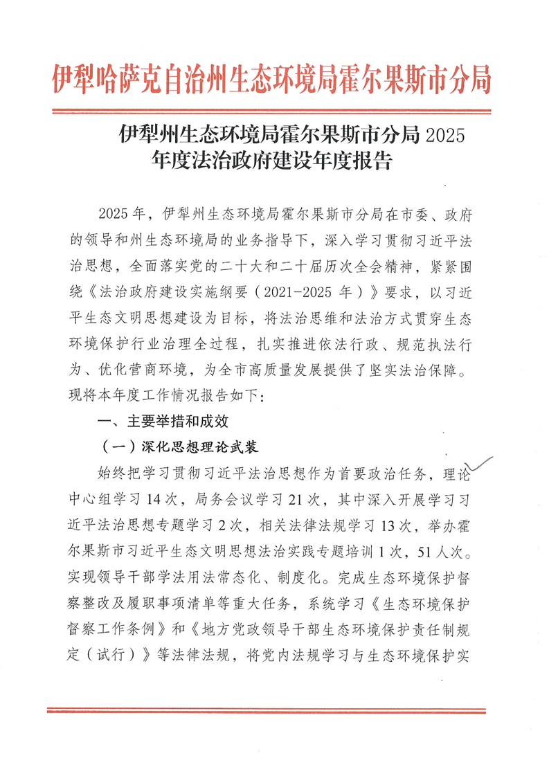 伊犁州生态环境局霍尔果斯市分局2026年度法治政府建设监督报告2025年度述法报告