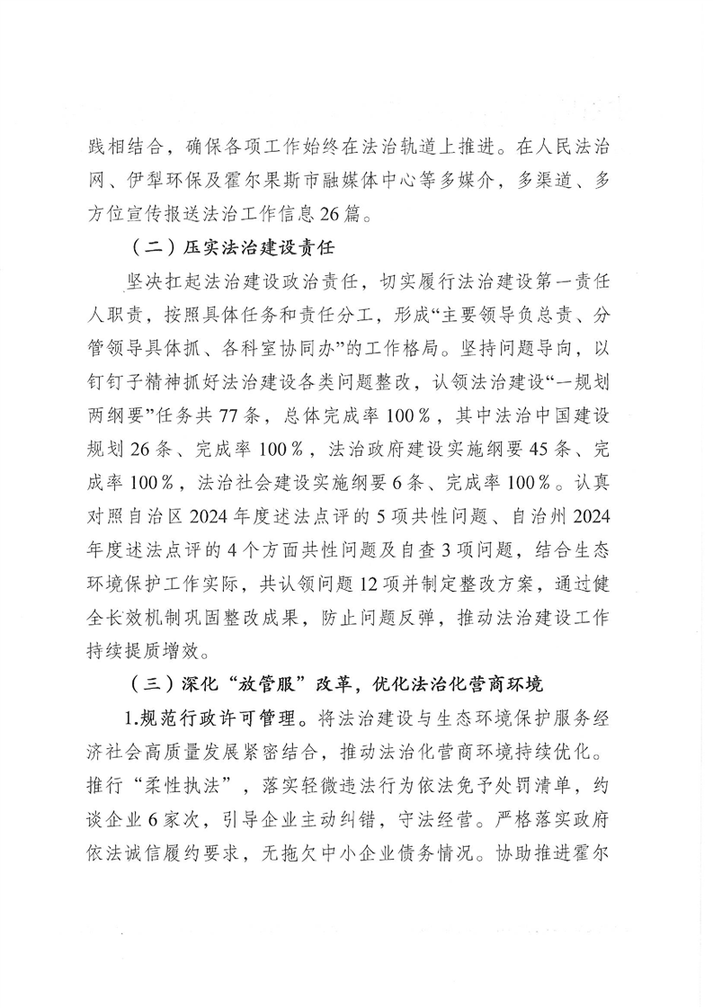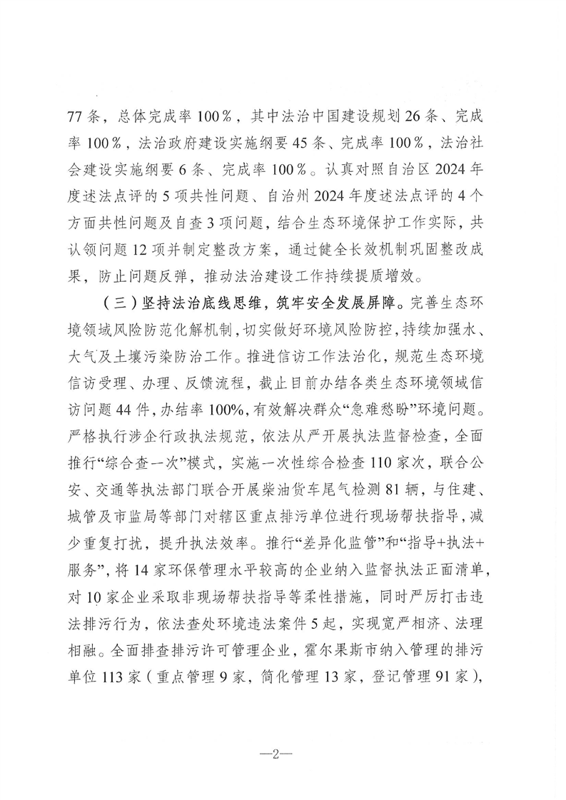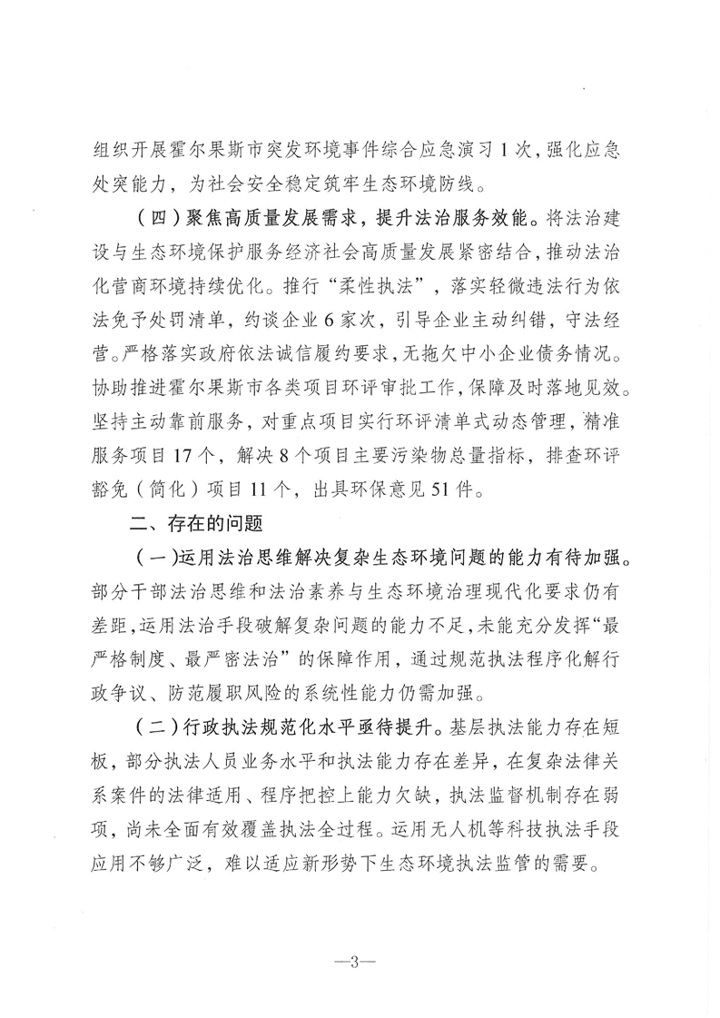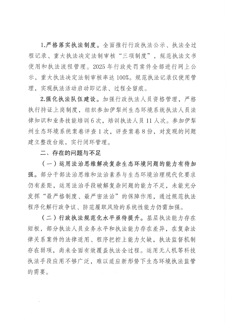 伊犁州生态环境局霍尔果斯市分局2026年度法治政府建设监督报告2025年度述法报告