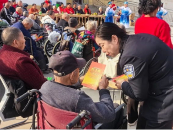 霍尔果斯市司法局组织法治宣传骨干、“法律明白人”走进静慧缘养老院,开展“送法进养老院情暖老年心”活动,为老人送上一份特殊的“法治重阳节礼物”。