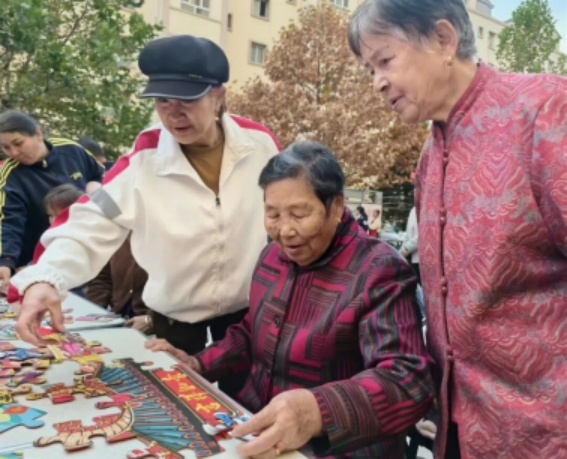 霍尔果斯市卡拉苏街道联合市民政局、文旅局以“传承文化、传递温情”为主题,开展了一场兼具仪式感、趣味性与服务性的重阳活动,通过“梳头礼”、趣味互动、爱心义诊等形式,让老人们在欢声笑语中感受节日的温暖。