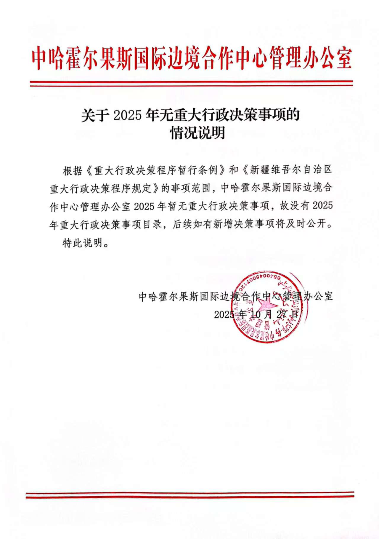 关于2025年无重大行政决策事项的情况说明