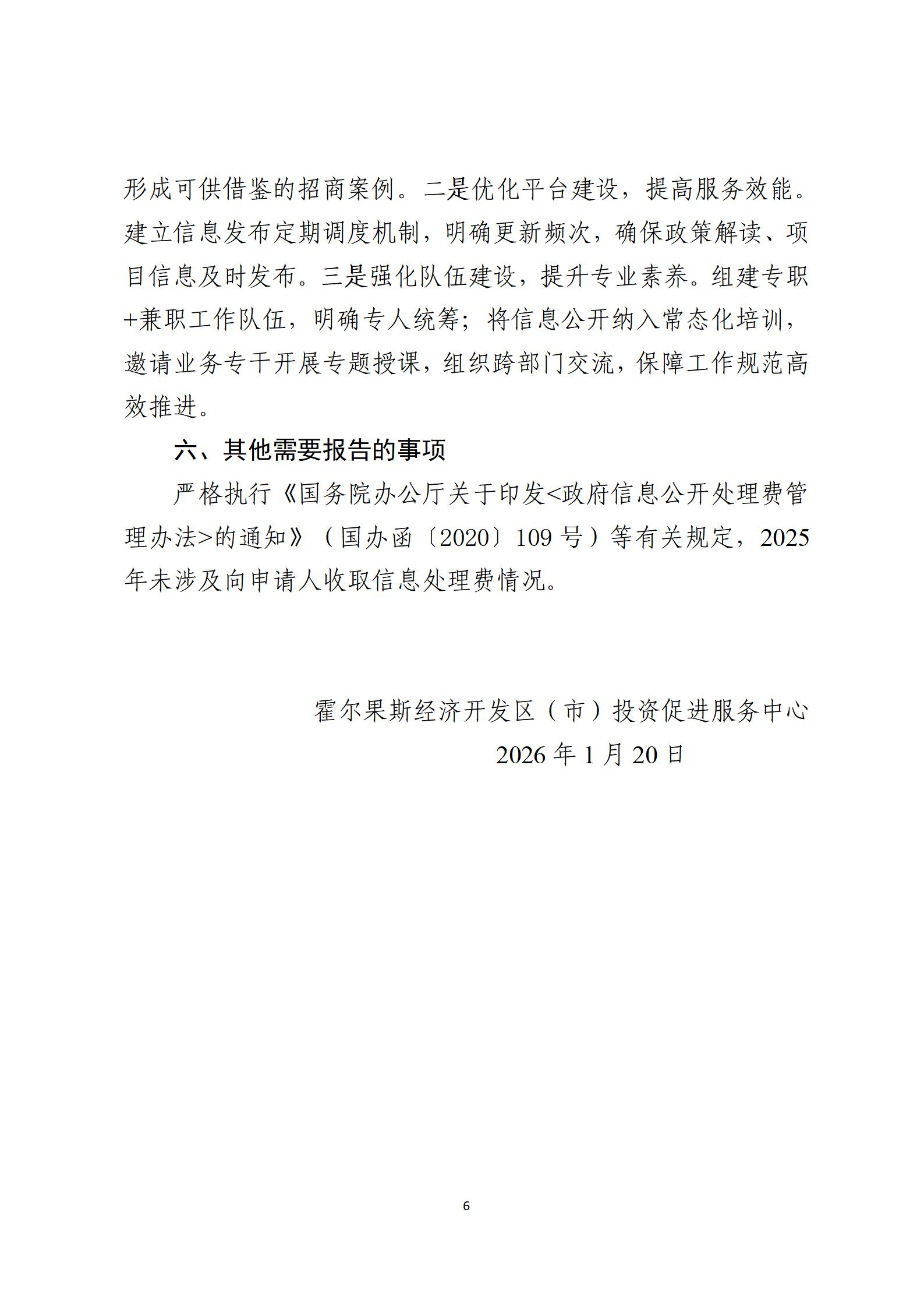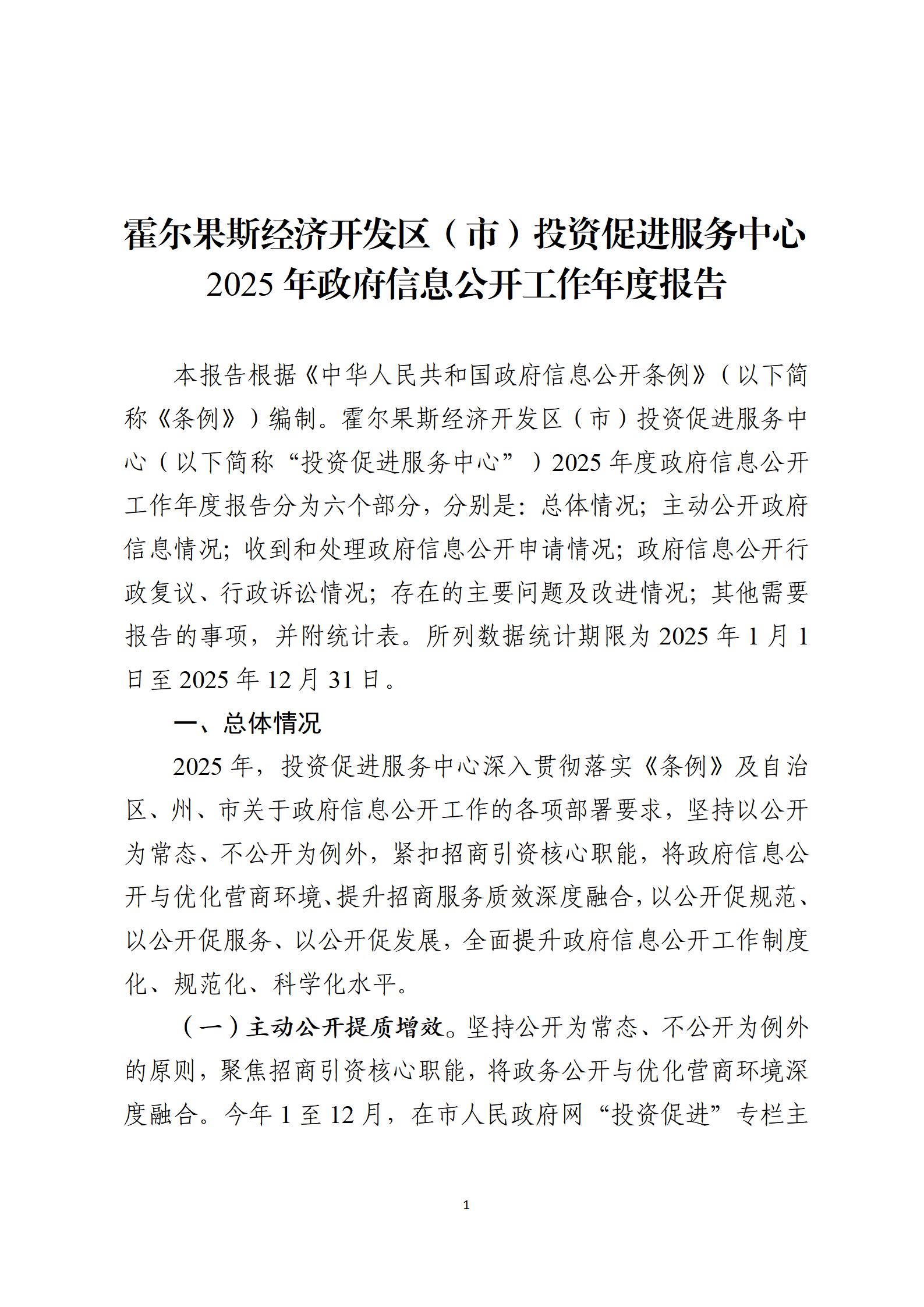 霍尔果斯经济开发区(市)投资促进服务中心2025年政府信息公开工作年度报告