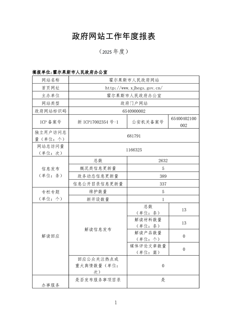 霍尔果斯市人民政府网站工作年度报表(2025年)