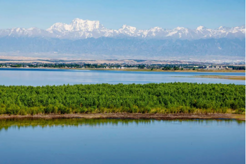 >>5月9日拍摄的新疆生产建设兵团第六师五家渠市青格达湖湿地新华社记者胡虎虎/摄