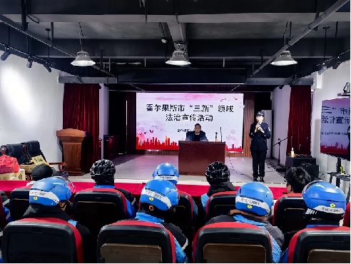 近日,新疆伊犁哈萨克自治州霍尔果斯市司法局工作人员来到辖区内的饿了么公司、快递公司、司机之家等地点,为辖区内的外卖骑手、快递员、货车司机等新就业群体,开展普法宣传活动。