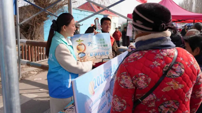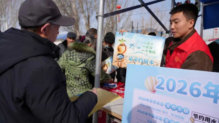 2026年世界水日主题是“水与性别”,中国水周主题是“国家水网世纪画卷”。工作人员通过悬挂横幅、摆放科普展板、发放宣传手册与节水礼品、现场答疑等方式,向群众普及水资源保护、生活节水技巧、农田高效节水、饮用水安全、河湖管护等知识,重点讲解滴灌、水肥一体化等农业节水技术以及日常一水多用、杜绝长流水等实用方法。